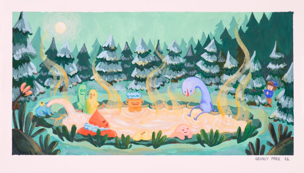 A girl in witch costume and a boy dressed as a mummy are trick-or-treating around brownstone building. They were happy seeing realistic ghosts, skeletons, and mysterious hand waving at them. But one ghost has a tail and ears popping out, and it is a fox who was wearing a costume.